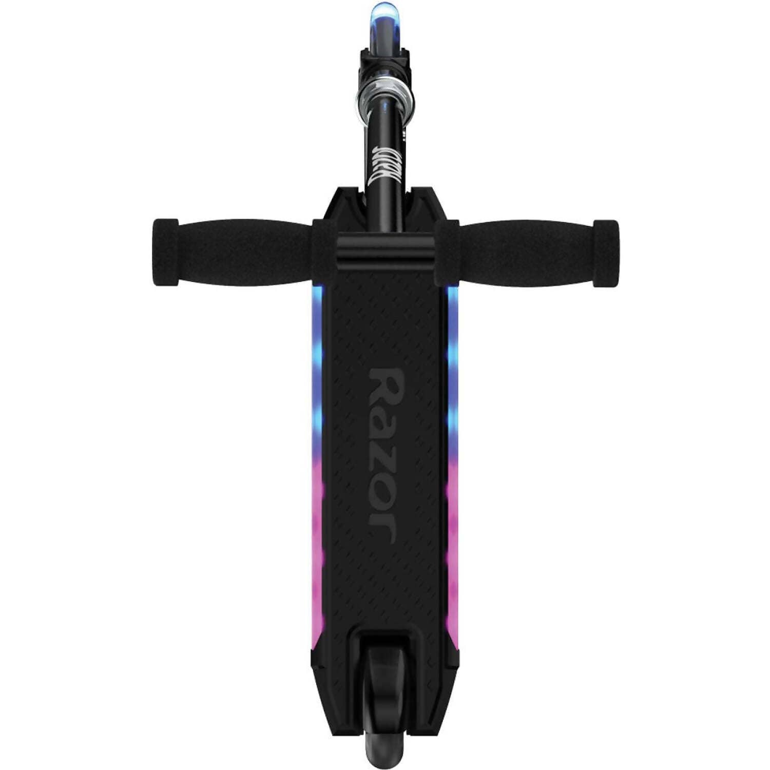 The classic Razor kick scooter is made even beer with the addition of multi-color LED lights that don't require batteries! Kick 2 Glow's front wheel and deck are lit through the power of moon.