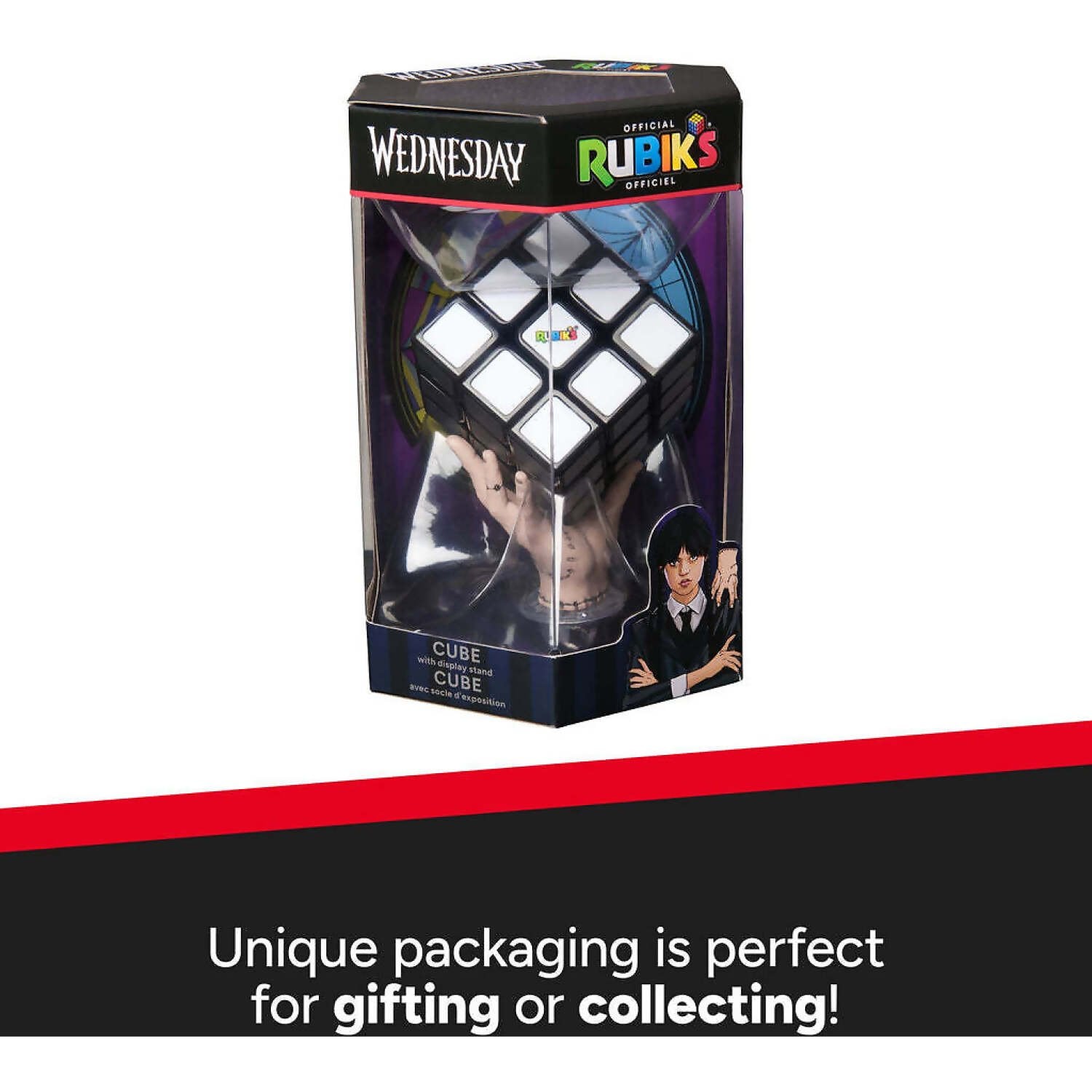 Includes 1 Wednesday Rubik’s Cube, 1 Thing Display Stand