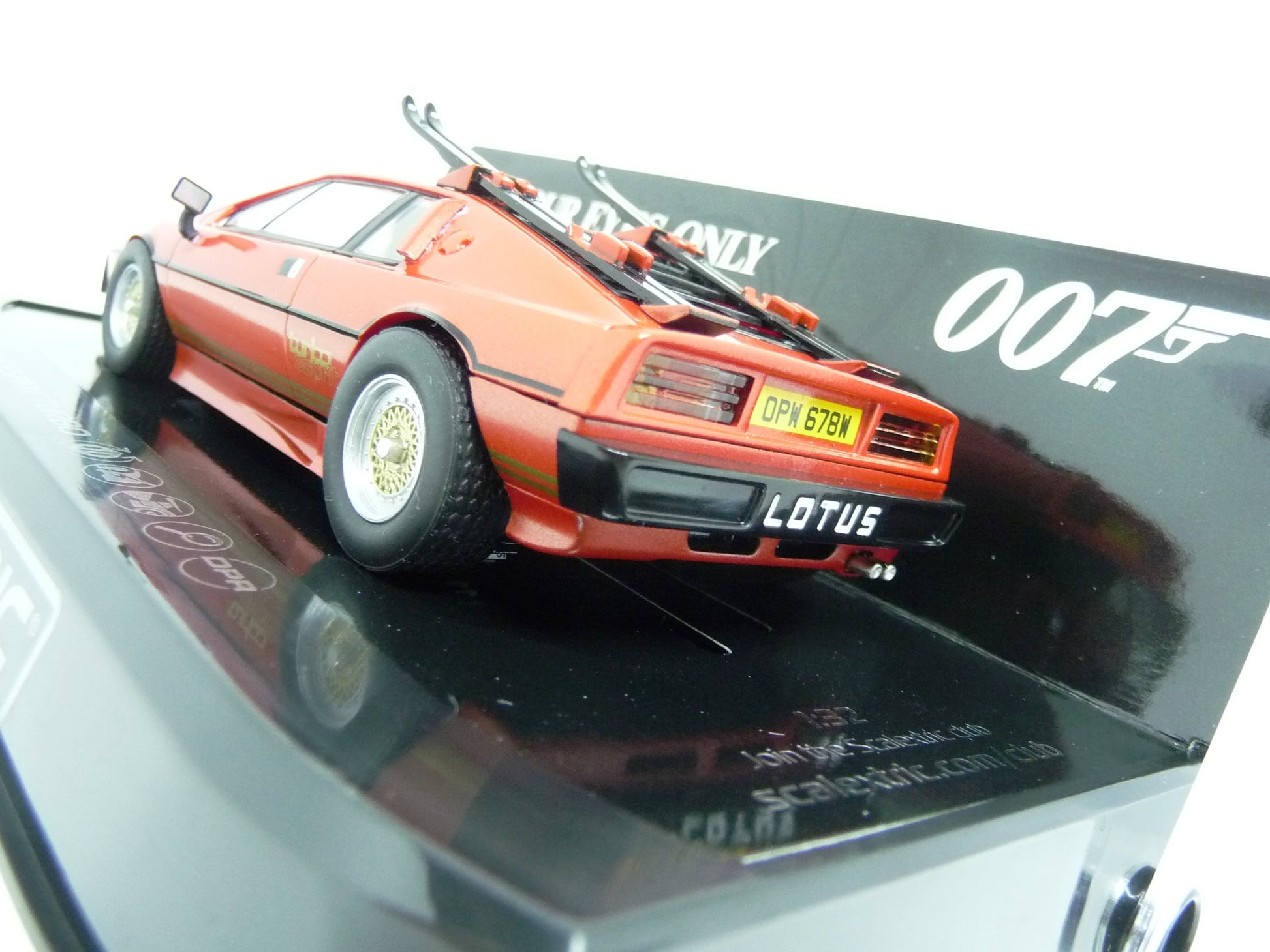 - License line : Produced under license from Group Lotus Plc LOTUS, the Lotus Roundel, car names and all associated logos and distinctive designs are trade marks of Group Lotus Plc For Your Eyes Only, 007 , and related James Bond Indicia ©1962-2021 Danjaq, LLC and Metro-Goldwyn-Mayer Inc For Your Eyes Only, 007 , and related James Bond Trademarks are trademarks of Danjaq, LLC All Rights Reserved 007Store com