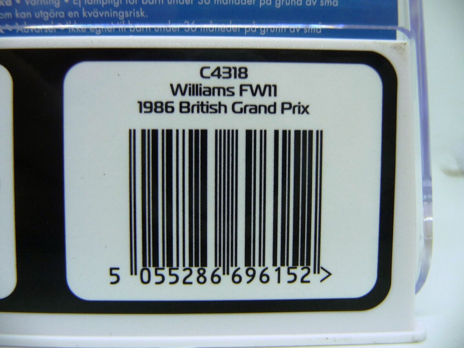 Scalextric C4318 Willams FW11 1986 British Grand Prix slot car also suits Carrera