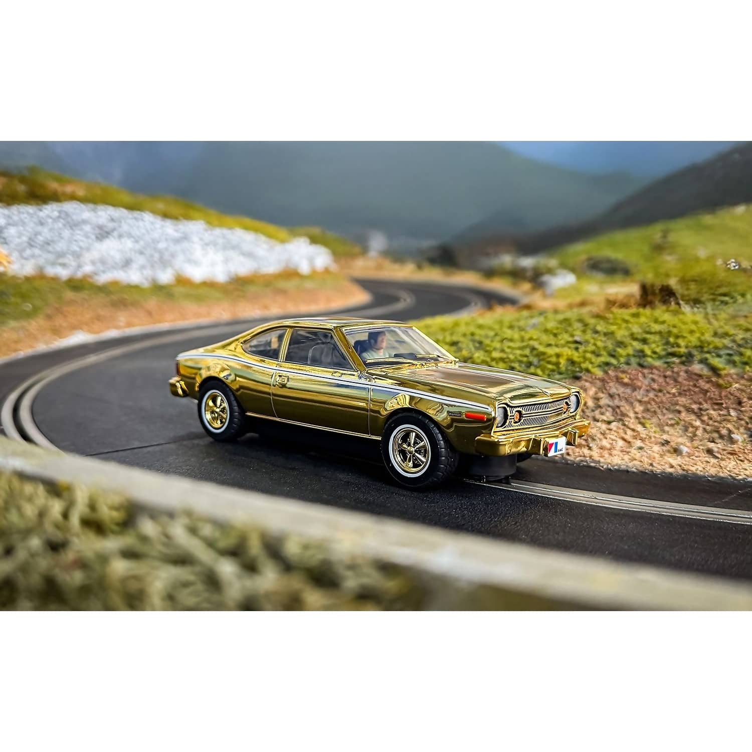 The AMC Hornet - James Bond The Man With The Golden Gun Gold Edition is a stunning 1:32 scale slot car celebrating the 50th anniversary of the iconic Bond film. Featuring a dazzling gold finish, this model replicates the legendary AMC Hornet used in one of James Bond’s most thrilling chase sequences. With its sleek design and high-detail bodywork, this car brings the excitement of cinematic espionage to the Scalextric track.