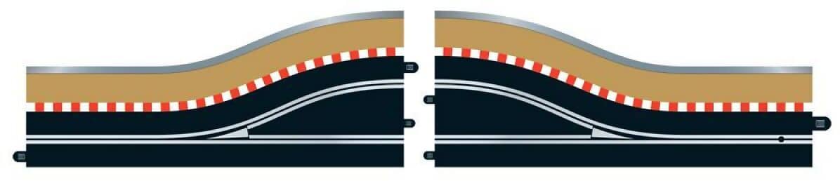 This pair of Scalextric digital pit lane track sections are the ideal tool to create pit lanes for your digital layouts This pack also allows the creation of alternative track routes such as a single lane rally extension track to a current layout, converting 2 lanes into 1 lane or 2 lanes in to 3 lanes to name just a few There is simply no limit to the amount of additional lanes you can add The C7014 left hand pit lane track is also now available Alternative pictures are track layout suggestions only