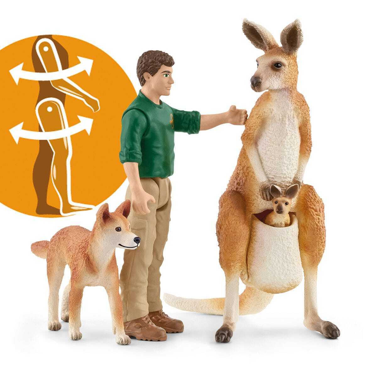 Contents: 1x Ranger Tom, 1x Kangaroo mother, 1x Kangaroo baby, 1x Dingo, 1x backpack, 1x binoculars, 1x cup, 1x tree stump