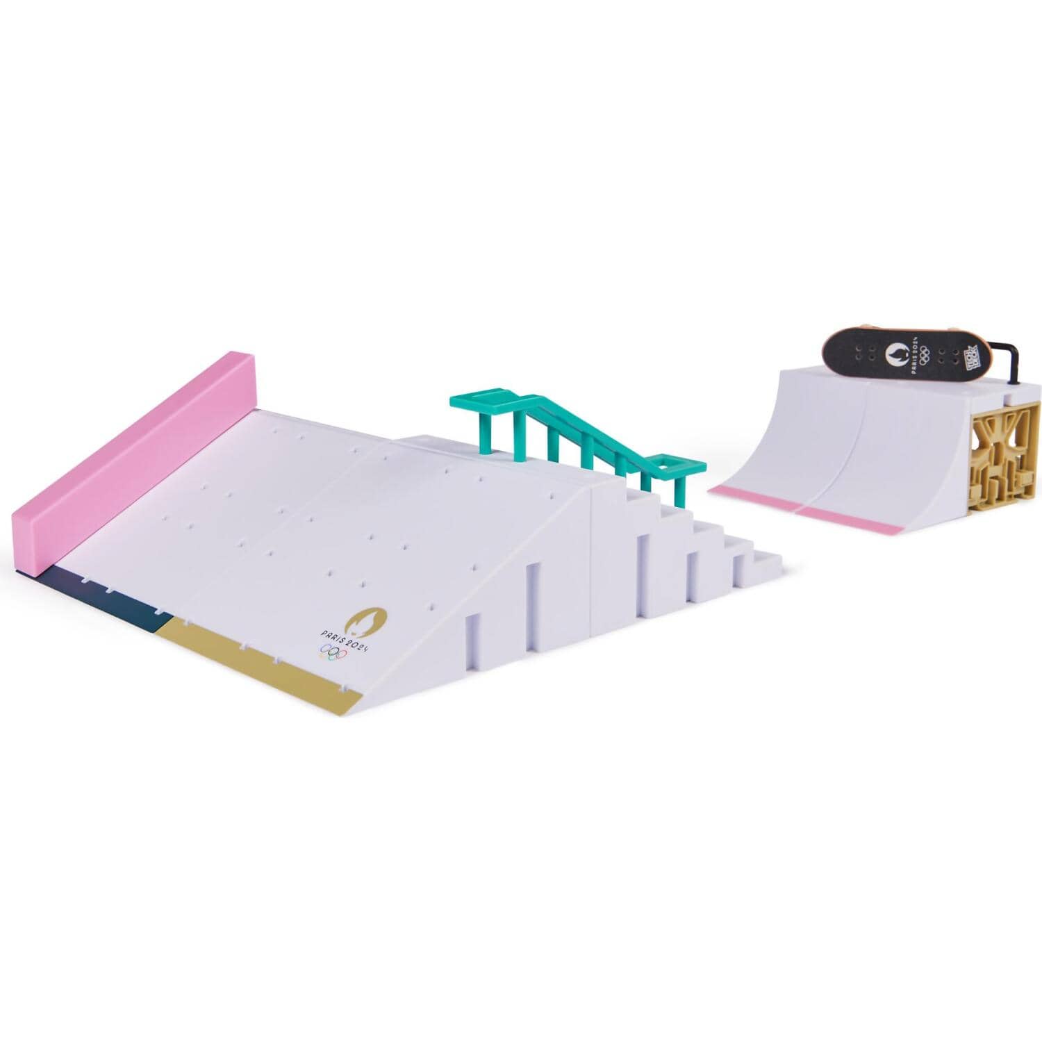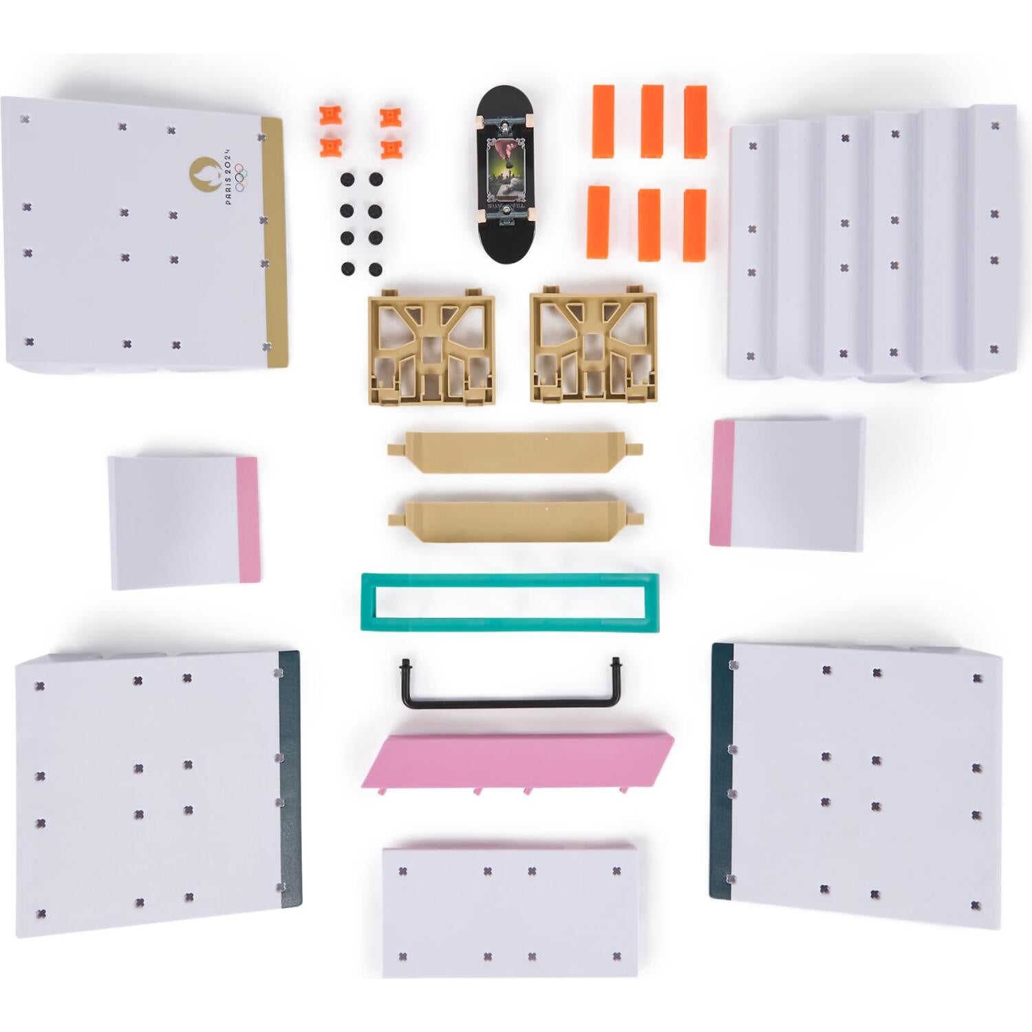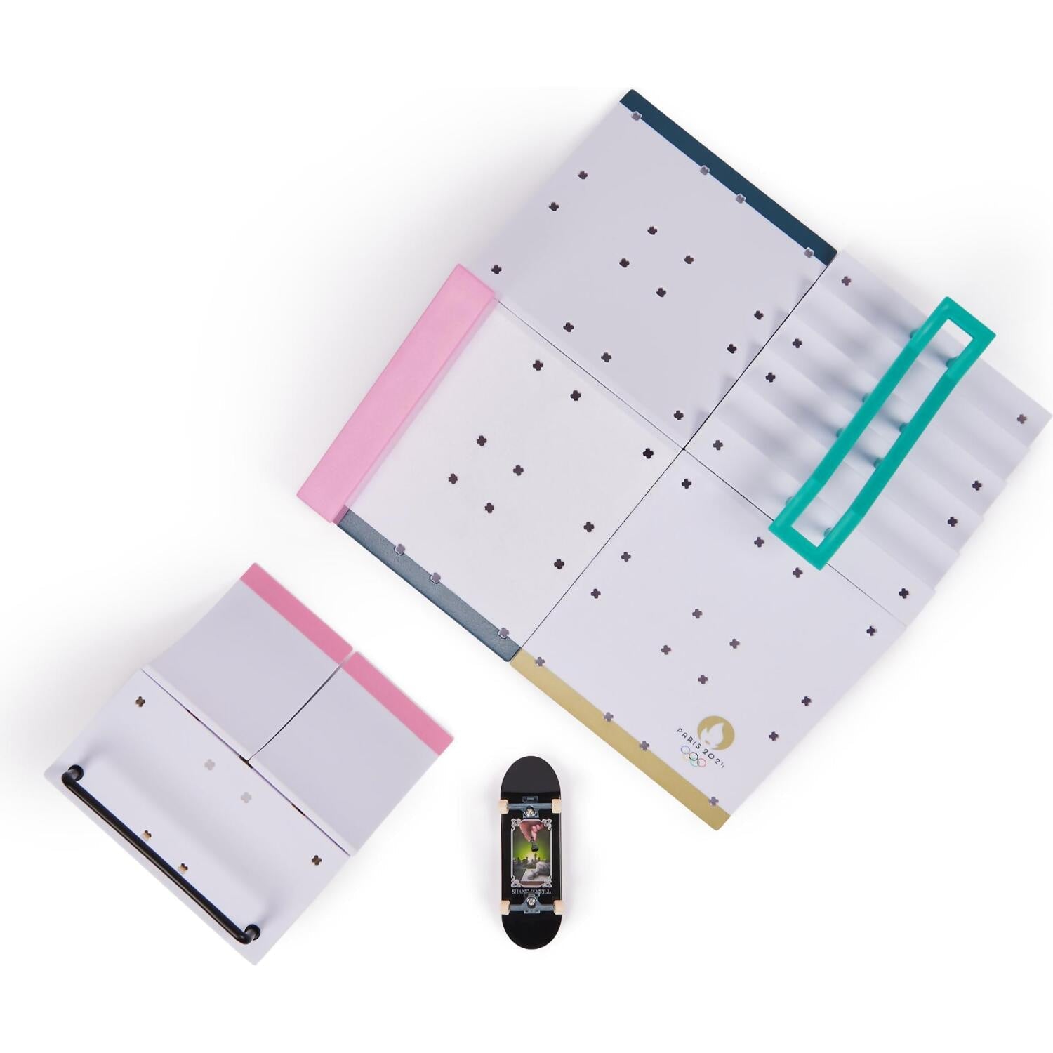 Skate the Olympic Park Tech Deck course with the Shane O’Neill pro fingerboard and add to your mini skateboard collection. Collect all three Paris 2024 Official Olympic Licensed Product playsets to create the whole park to build the ultimate fingerboard obstacles for you to shred. This is the perfect playset to use with your Tech Deck fingerboard collection or Tech Deck BMX (each sold separately).