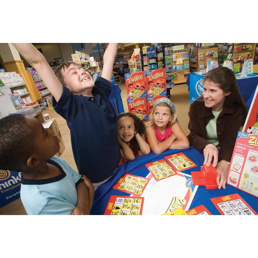 This innovative game encourSuitable from pre-readers and early readers alike to match the pictures and words on their challenge cards with the tiles revealed in the Zingo! Zinger device.