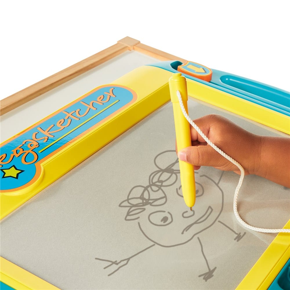 Motorised Megasketcher is the new TOMY mess-free doodling tool designed for early drawing skills and creativity development. Giving hours of fun, encouraging and developing your child's imagination. It's easy to erase once drawing is finished just slide the eraser lever down and it's ready to go again!