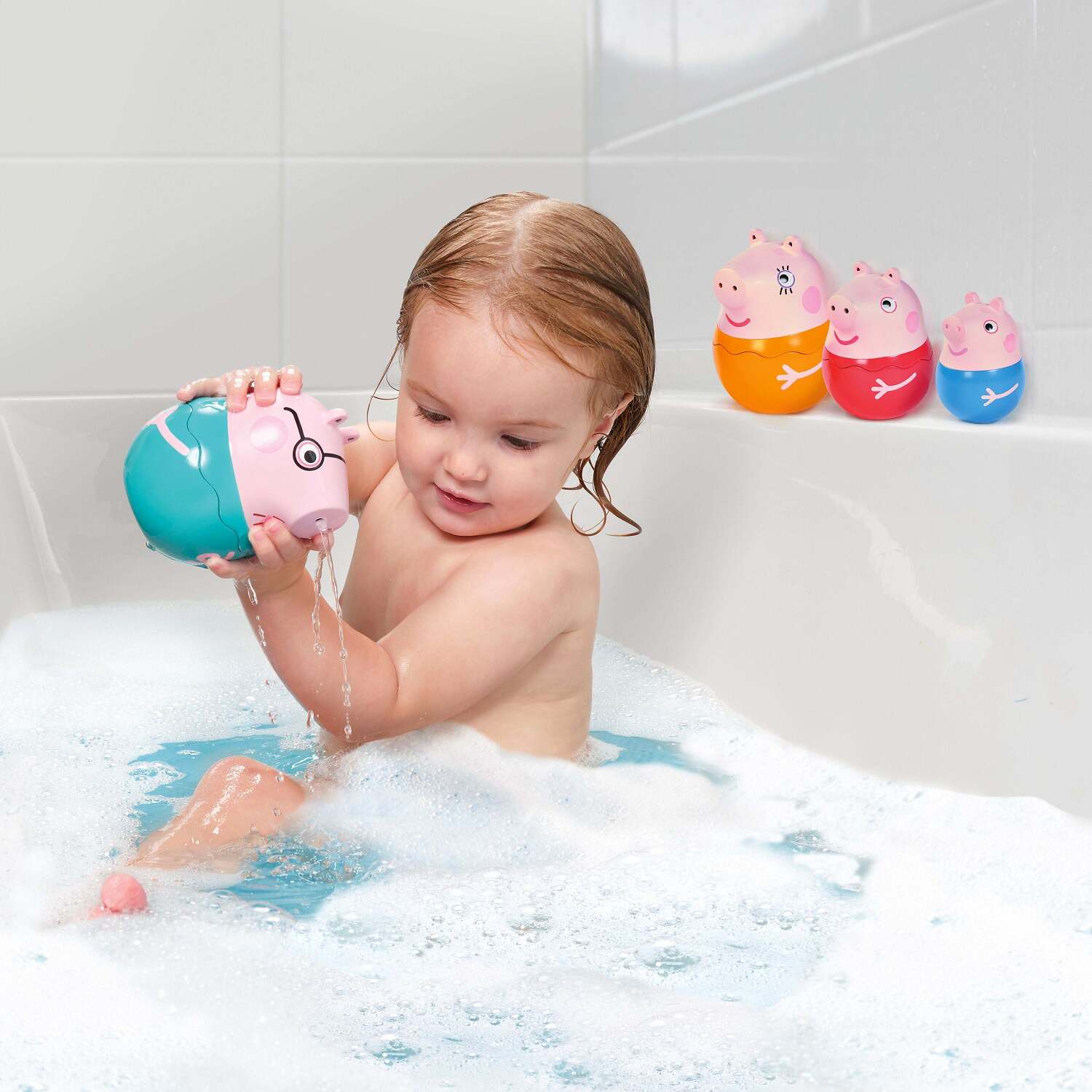 - Water Play: Daddy Pig, Mummy Pig and Peppa Pig can be used as water pourers – each has top and bottom halves that sprinkle water different ways