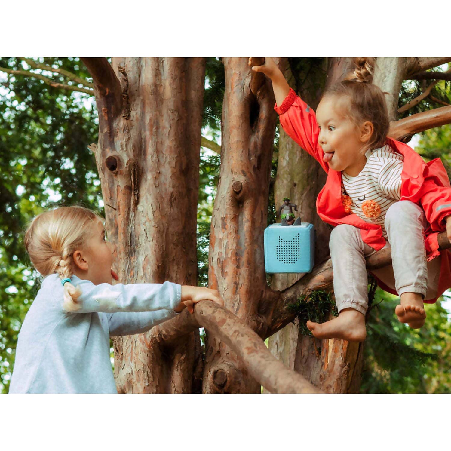 - The Toniebox combines audio and entertainment unlike any other way. When Tonies are placed on the Toniebox, magical worlds of music, adventures and fairy tales open up. After a simple setup, children can use the Toniebox on their own without any problems and turn their imagination into reality. Still want to know more? Scroll down to learn more about the tonies® universe!