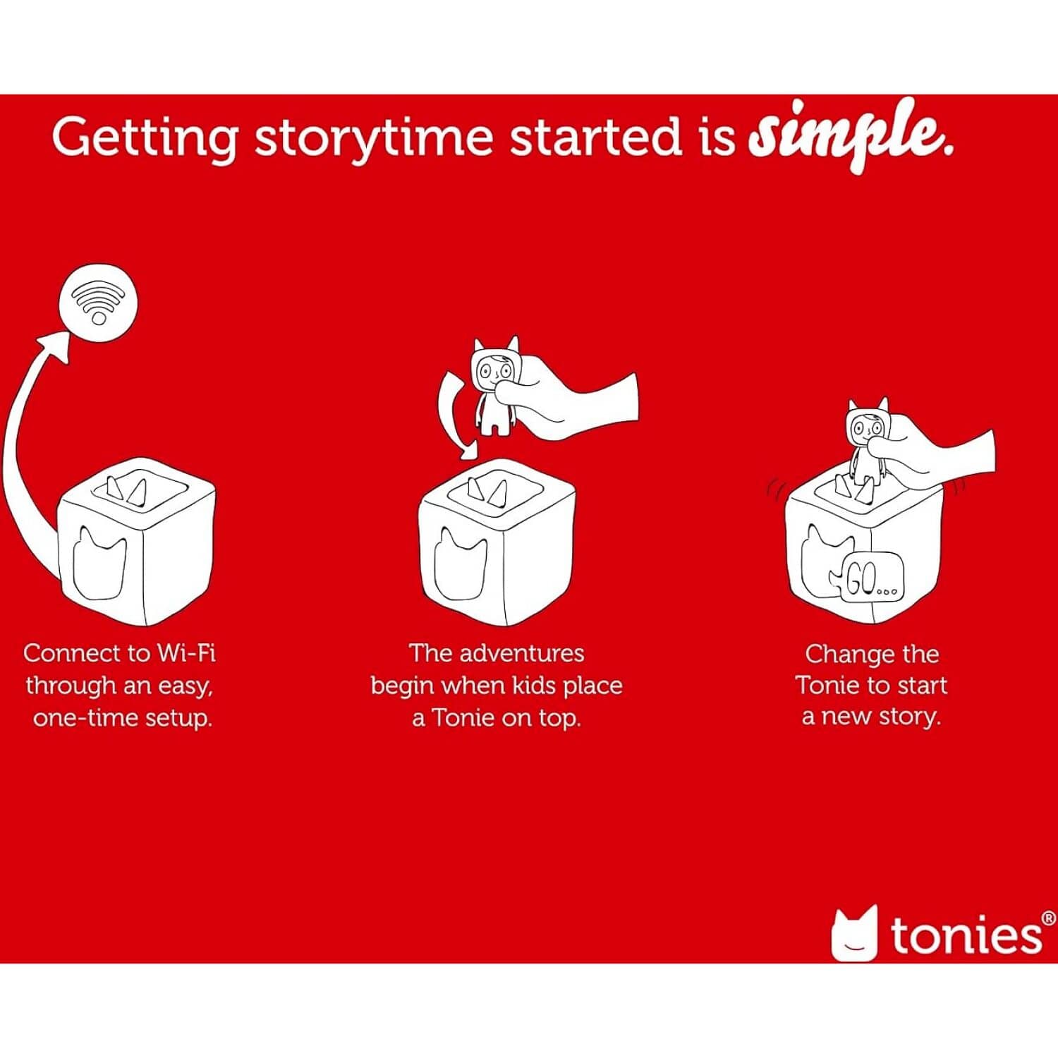 - The Toniebox combines audio and entertainment unlike any other way. When Tonies are placed on the Toniebox, magical worlds of music, adventures and fairy tales open up. After a simple setup, children can use the Toniebox on their own without any problems and turn their imagination into reality. Still want to know more? Scroll down to learn more about the tonies® universe!