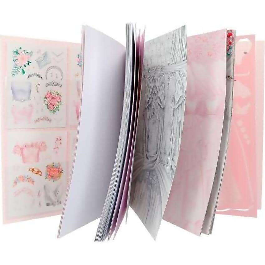 This charming book includes 60 pages of beautiful wedding-themed designs, allowing children to craft their dream wedding looks. With 4 sticker sheets, a stencil, and 16 pages of printed fabric designs to cut out, it's a perfect blend of colouring and crafting.
