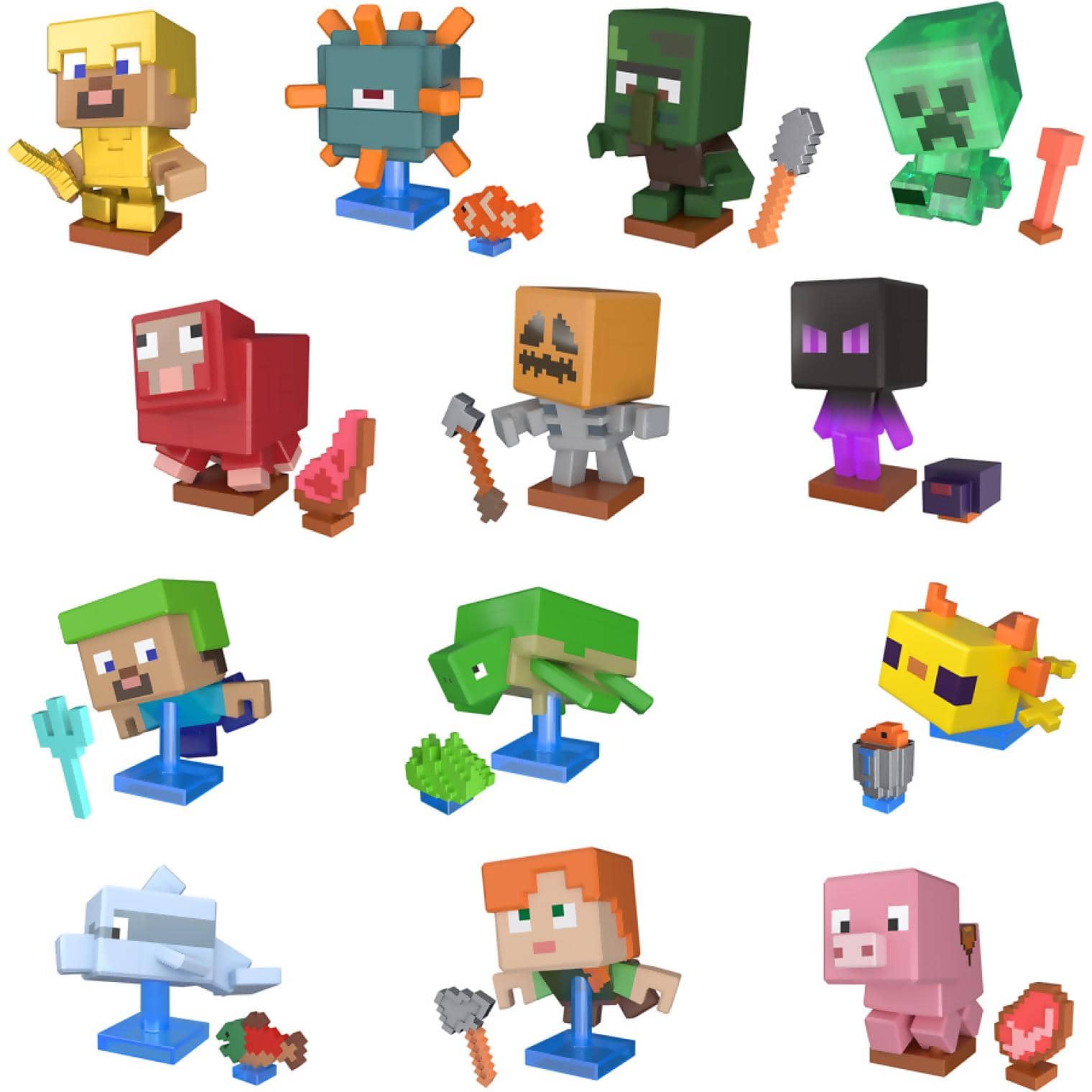 The character will bond together in 5 minutes simply by using the Aqua Stick and water! There are 12 new Minecraft characters to discover and craft. Discover Swimming Alex, Dolphin, Guardian, Swimming Steve, Turtle, Axolotl and more. Did your child discover Rare Golden Armor Steve? Each Craft character has a treasure chest to discover. Look out for new rare treasures including a Sea Lantern and TNT! Or will your child find the Golden Spyglass? A REAL Gold Dipped treasure! There is 1 in 24 chance of finding real Gold Dipped treasure!
