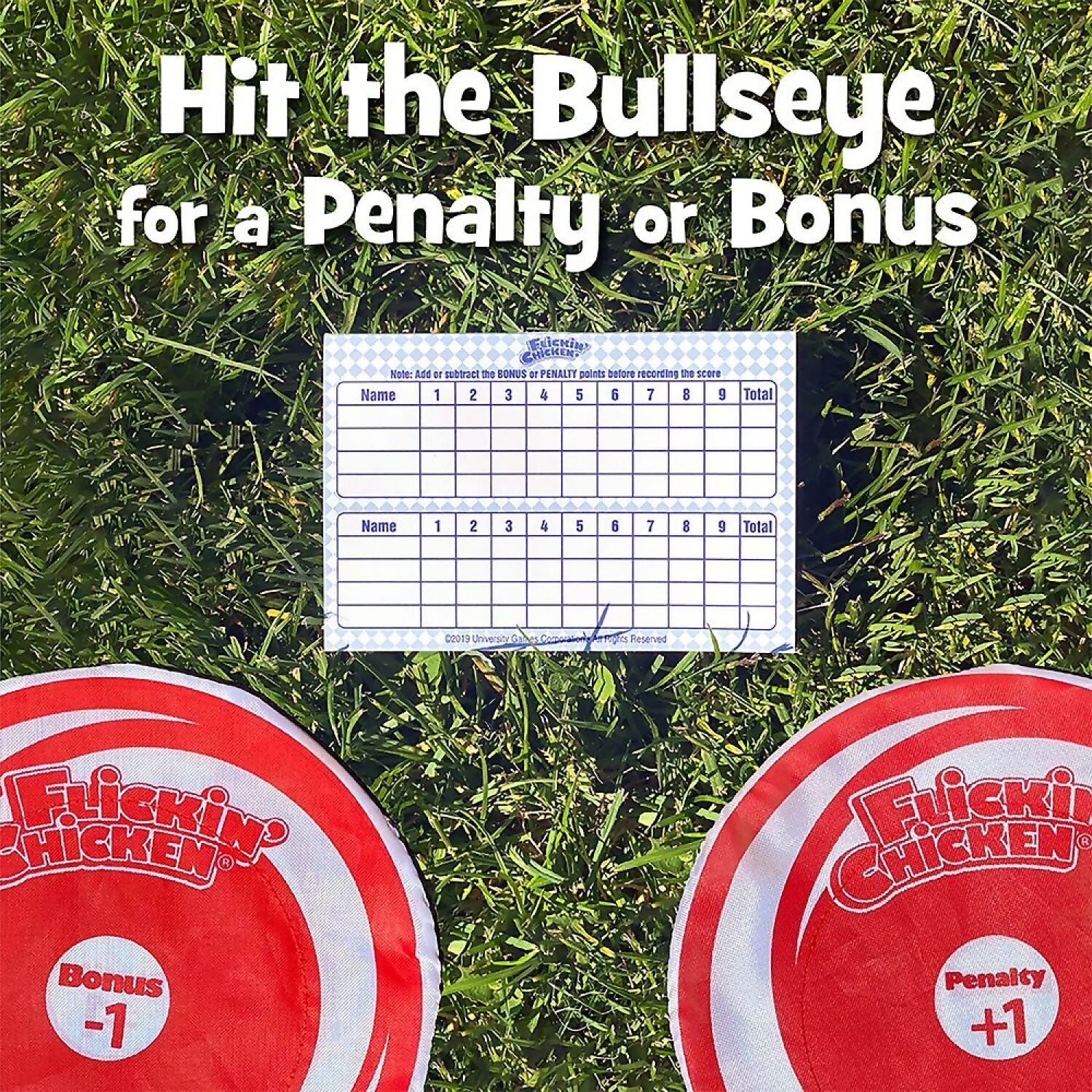 - Includes 4 rubber chickens, target disc, score pad, pencil, and rules