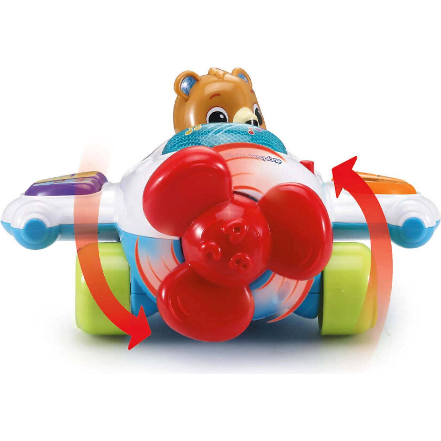 Press his head to get that propeller moving, then hold on tight and push or pull the plane to take off into playtime. Once you reach cruising altitude, the light-up windshield button adds fun songs and melodies while the wings teach letters, numbers and words.