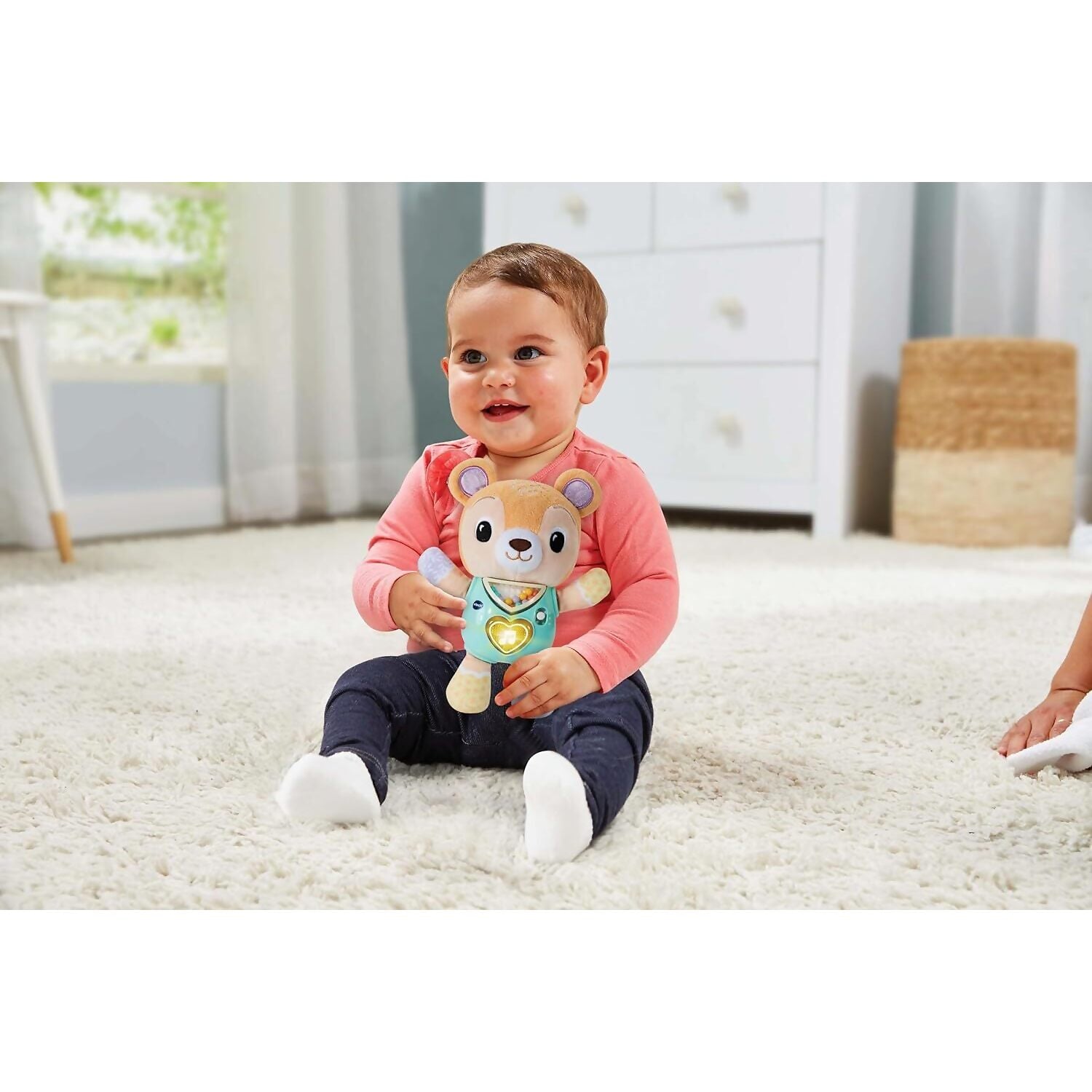 The Vtech - Cuddle & Sing Bear is a delightful toy designed to engage and entertain young children. This cute and cuddly bear introduces your little one to first words, feelings, music, and songs. The various textures and light-up button help develop your baby’s senses and fine motor skills.