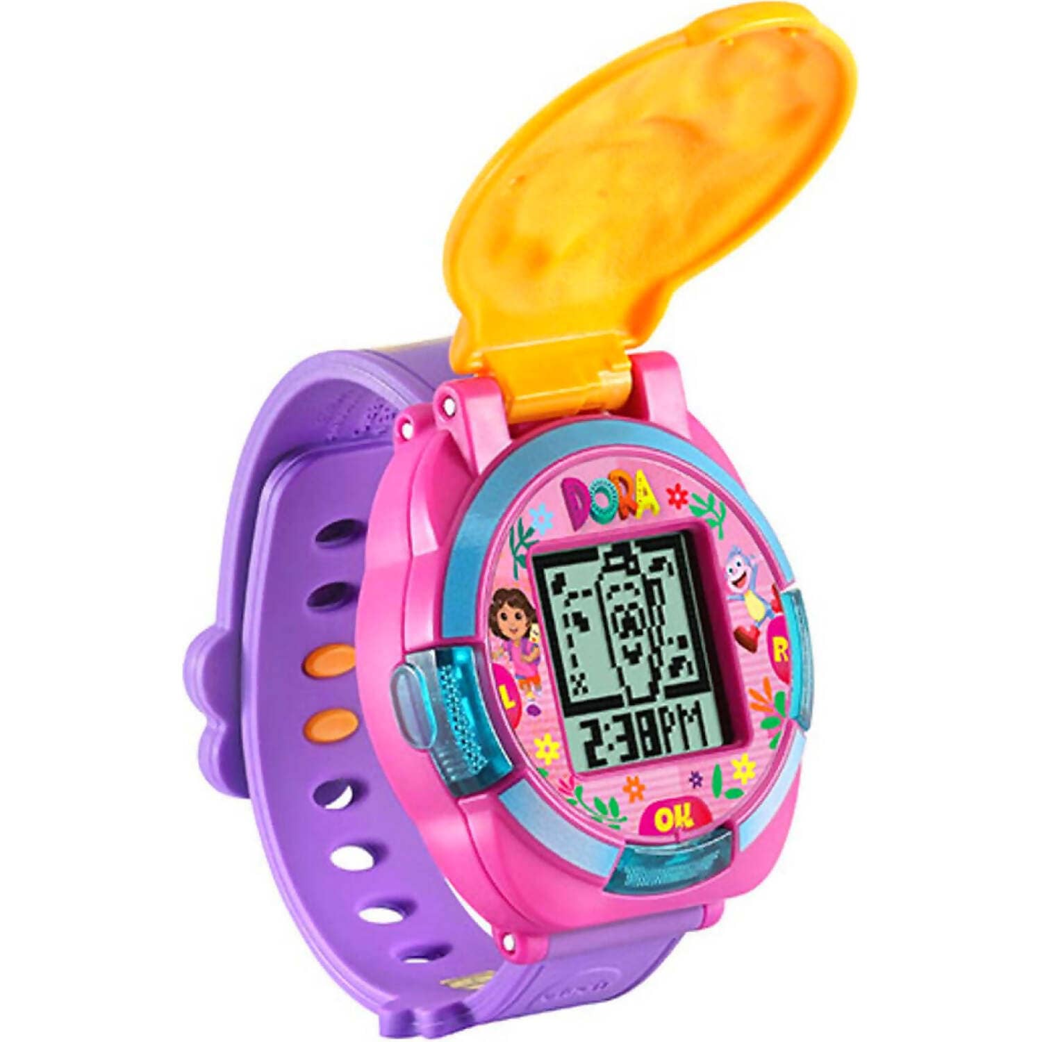 Adventure awaits with the VTech Dora The Explorer Time For Learning Adventure Watch, a bilingual digital watch designed to inspire curiosity and learning. Featuring Dora, Map, Boots and other beloved characters, this interactive timepiece introduces children to time-telling, daily routines, and Spanish vocabulary through engaging animations and phrases. With a flip-open cover and ten customisable clock faces, kids can personalise their watch while exploring educational content.